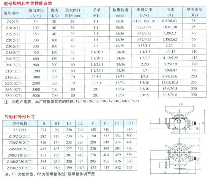 多回转电动执行机构有:户外型、隔爆型、整体型、整体调节型、隔爆整体型、隔爆整体调节型等。按连接型式,还分为转矩型和推力型。